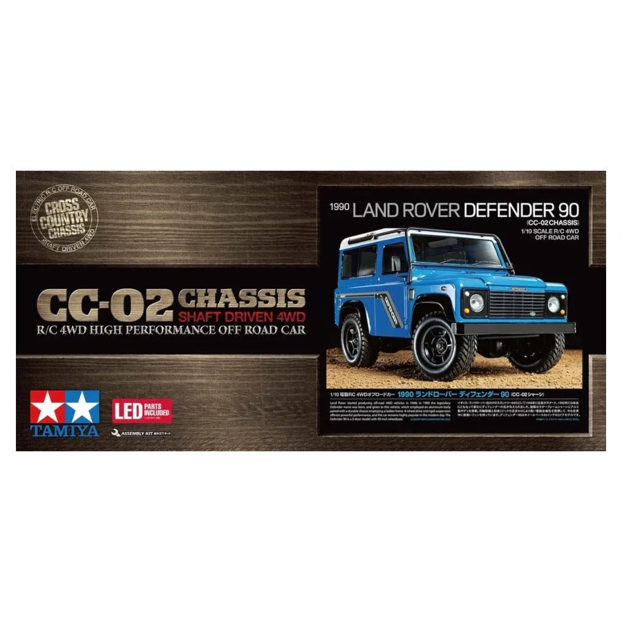 Loved by millions across the world for its superb 4WD performance and distinctive functional form, the Land Rover Defender had a long production run from 1948 until 2016. This R/C model assembly kit recreates the short wheelbase Defender 90 variant from 1990, with the unmistakable form captured by a polycarbonate body featuring front and rear light cases which are compatible with separately sold LEDs. Separate molded parts are included to depict features such as the outer roll cage, front grille and spare tire cover. The CC-02 chassis is a great base, providing a sure-footed drive whether on-road or off.